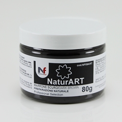 Colore arancio in polvere confezionata in barattolo in plastica con tappo richiudibile.